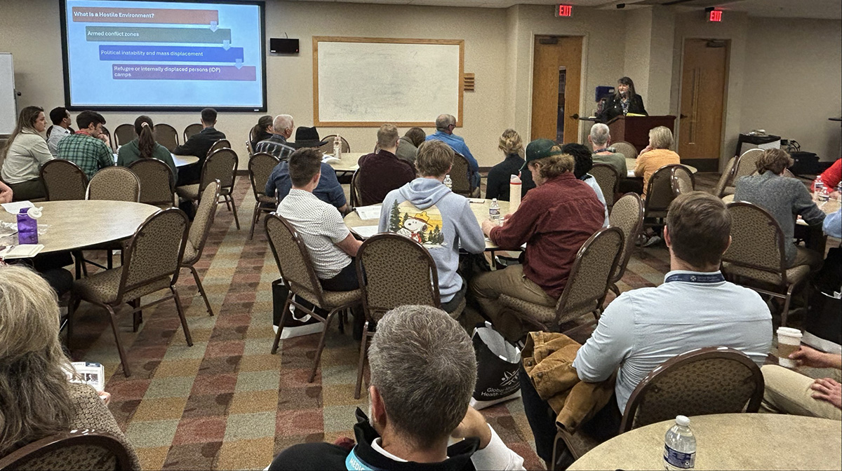 More than 200 attendees filled the room to hear Roxanne Jones, Vice President of Global Programs, present “Navigating Health Care in Hostile Environments.” Since 2022, Global Care Force volunteers have provided primary care in Ukraine’s active conflict zones and previously occupied villages, bringing essential care to communities facing the daily realities of war.
